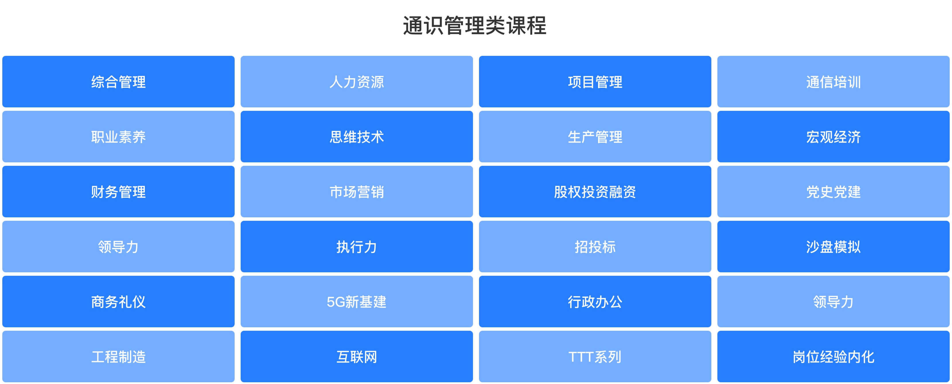 內(nèi)訓(xùn)服務(wù)對(duì)標(biāo)行業(yè)發(fā)展,課程迭代緊跟企業(yè)需求,課程維度覆蓋15大技術(shù)類(lèi),19大非技術(shù)類(lèi)課程方向。